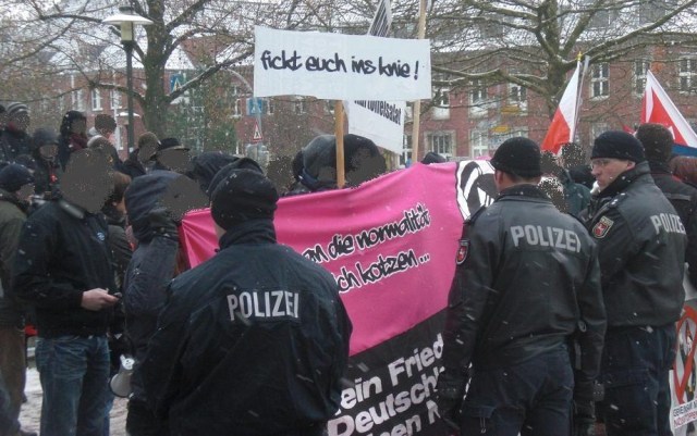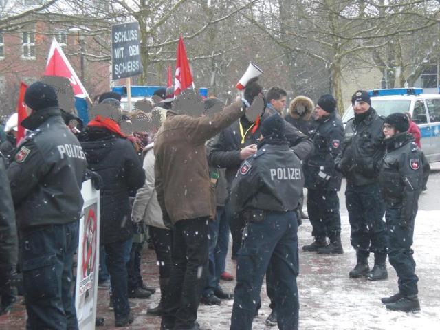 Während der einstündigen NPD-Kundgebung ließ das Pfeifkonzert nicht nach und auch anders konnte die Nazihetze gestört werden. Nach nur zwei Redebeiträgen, von denen mensch so gut wie nichts verstehen konnte, hatten die Nazis die Nase voll und packten ein. Es sprachen Manfred Börm und Holger Apfel. Börm beklagte sich massiv über die Vorfälle am Vortag in Lüneburg und kündigte Anzeigen gegen die Stadt Lüneburg und Gegendemonstrant_innen an.