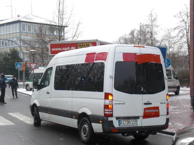 Seit heute sind die Nazis in zwei Mietfahrzeugen der Firma ProfiRent aus Hamburg unterwegs. Schon gestern hatten sie bei dieser Firma ein Fahrzeug gemietet. Dieses Fahrzeug war mit Werbung für die Fußballschule des HSV beklebt. Die Fußballschule und der HSV haben gestern sofort dafür gesogt, dass die NPD dieses Fahrzeug nicht weiter nutzen durfte. Ein Fanvertreter des HSV sprach gestern spontan auf der Kundgebung in Lüneburg und distanzierte sich von der NPD.